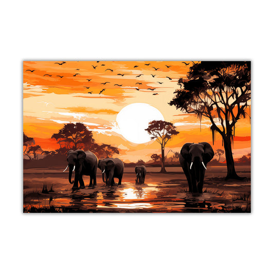 African Sunrise Elephants Canvas Wall Art Picture Print for the Living Room, Bedroom, Home Decor